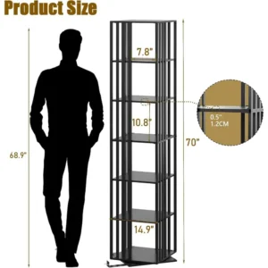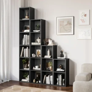 narrow bookshelf that is 71.5 inches high, a 6-story cube display rack, and a single black 6-story CD storage cabinet for the home office