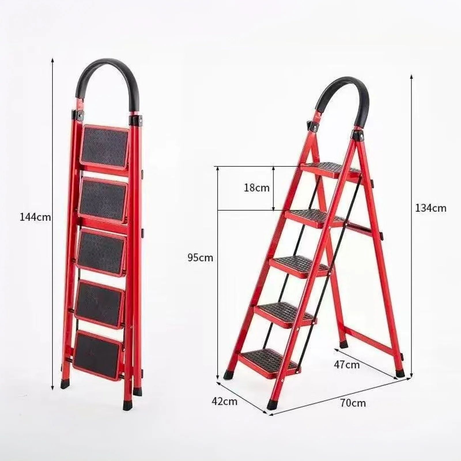 3/4/5-Step Folding Ladder with Anti-Slip Pedals, Heavy Duty Portable Step Stool for Home and Commercial Use