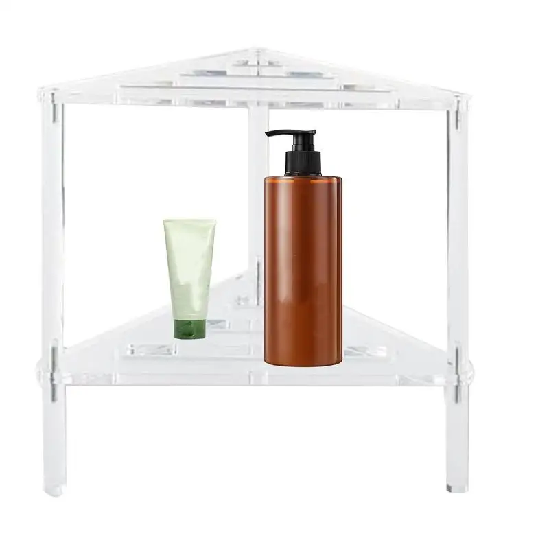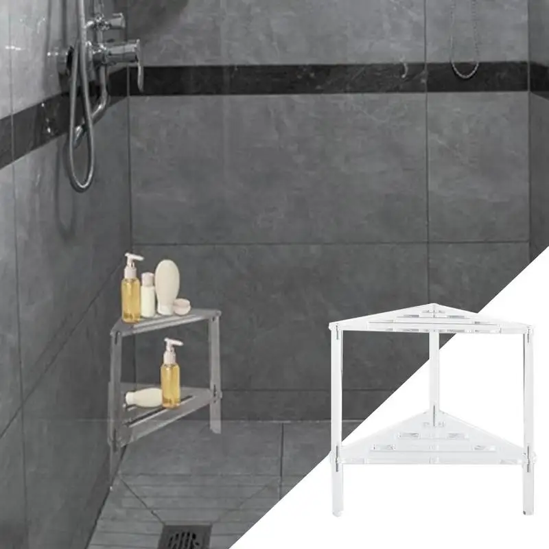 Acrylic Corner Shower Stool Non-Slip Shower Caddies Stable Heavy Duty Bathing Chairs With Storage Shelf For Bathroom