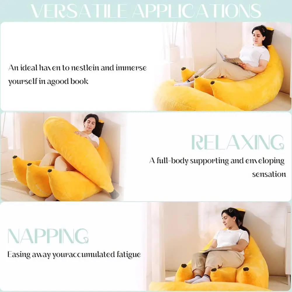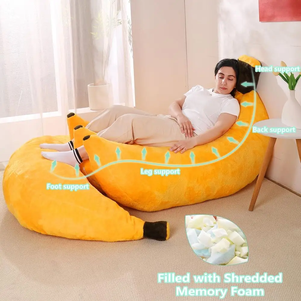 Product Dimensions: 60D x 40W x 13H; Material: Polyester Blend; Style: Art Deco; Weight: 13.31 kg; Product Description: Very Soft and Malleable; Size: Large 2-in-1 Banana Design with Ottoman; Fun and Function: This inventive banana-shaped bean bag adds both fun and functionality to your space by transforming from a comfortable floor chair to a comfortable sofa bed. For complete body comfort, a matching ottoman is included. Convertible Floor Sofa Bed: Unwind however you choose! The adjustable bean bag design allows you to lie flat, sit up, or recline, making it ideal for reading, gaming, watching movies, and relaxing. Plush & Cozy Comfort: Encased in incredibly soft, skin-friendly fabric and packed with supportive, soft beans that mold to your body, this cozy set will make you want to curl up. Unusual Present for All Ages: This banana bean bag sofa bed with ottoman is a thoughtful and useful present for a child's room, teen hangout, college dorm, or lively adult space. Quick usage method for opening packaging: You can shake and pat the product when you receive it because it is vacuum packed and has been compressed for a long time. Additionally, a warm hair dryer can hasten the sponge's recovery of support. Wait 48 hours; the longer you wait, the more the sofa will expand and the more solid the support will be.