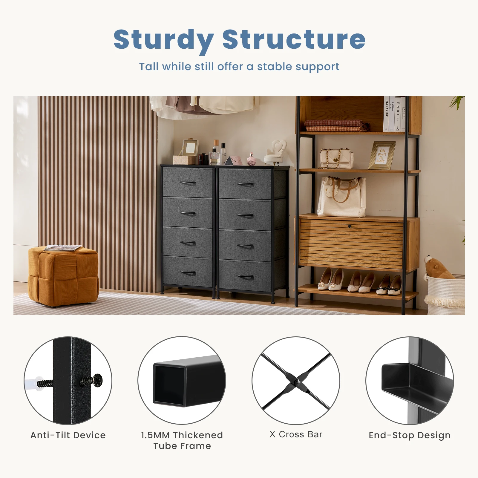 Be the first to review “JHK Bedroom Dresser with Four Fabric Drawers, Nightstand, Wardrobe, Steel Frame Closet, Clothes Storage Cabinet, and Furniture”