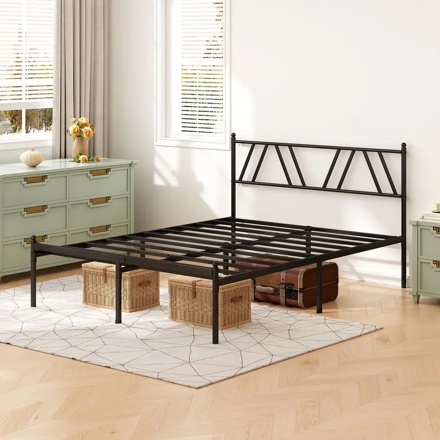 Be the first to review “King Platform Bed Frame with Headboard, 14 Inches, No Box Spring, Black, Easy Assembly”