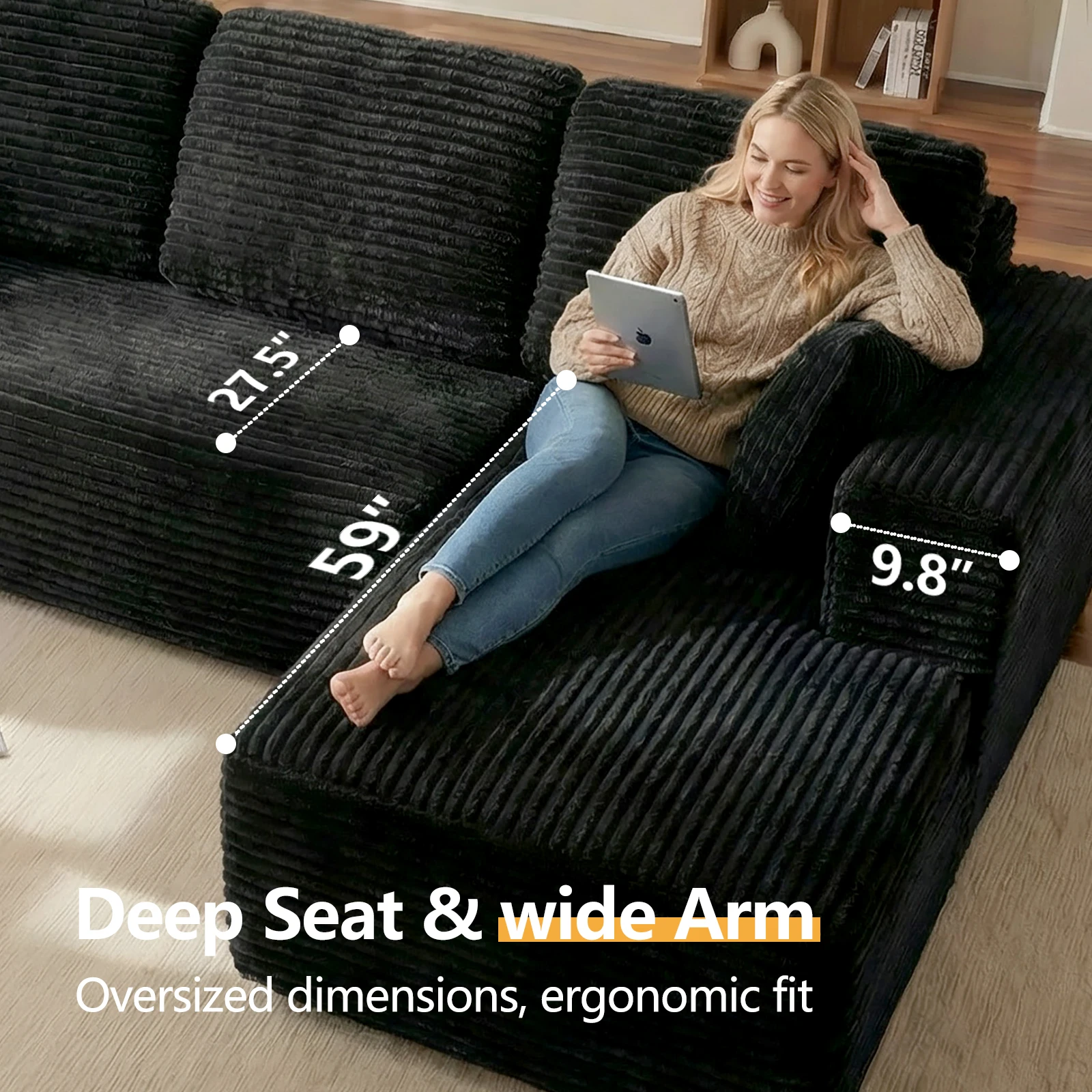 Modular Cloud Sectional Sofa for Large L-Shaped Couch with Chaise, Simple Compressed Boneless Couch, No Assembly Needed