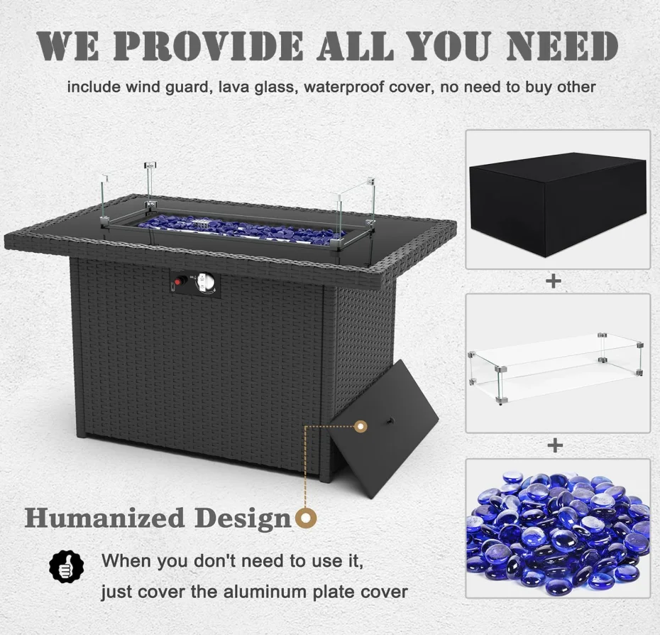 SAFETY ECO-FRIENDLY: The 55000 BTU outdoor firepit table with CSA certification. Upgraded dual-tube burner to provide more stable and cleaner combustion.