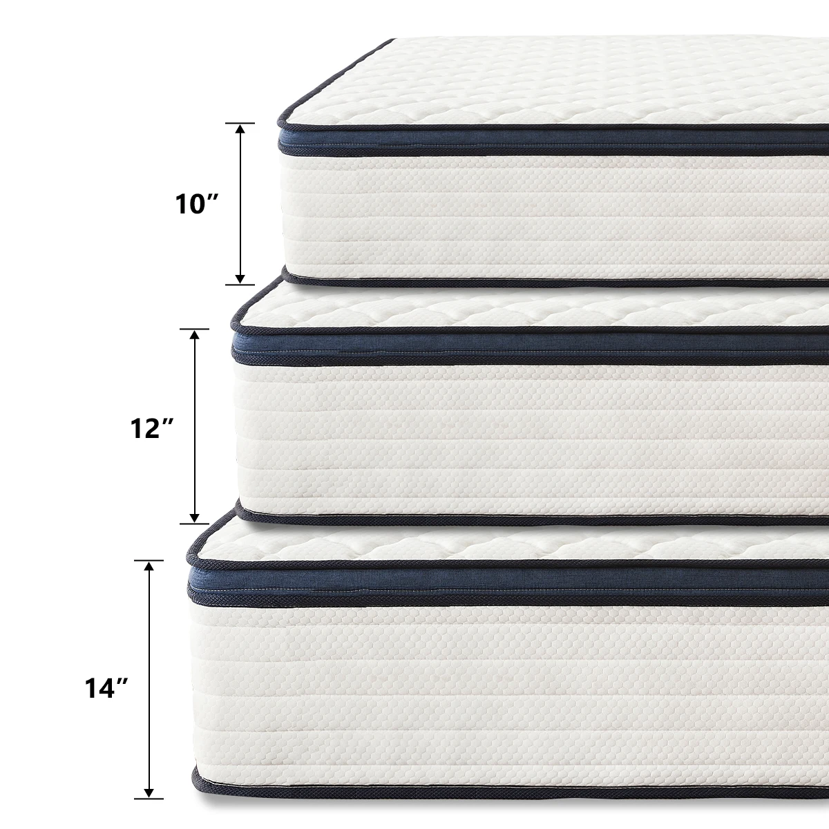 Thickness of mattress: 10"/12"/14"